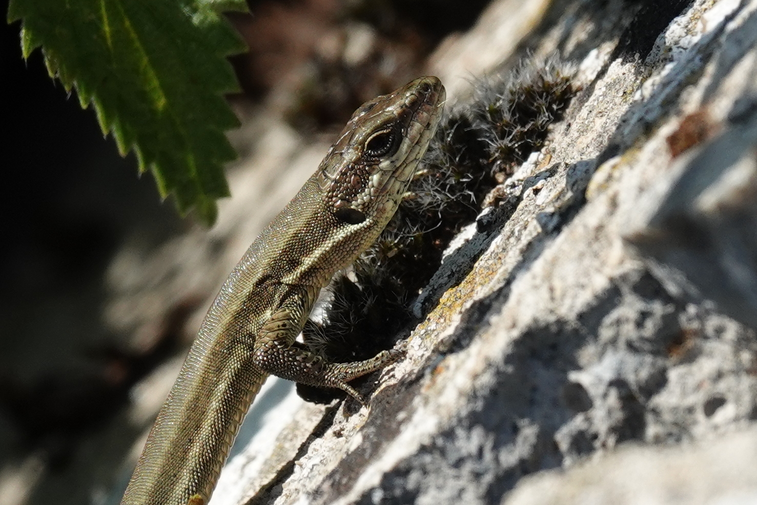 We were almost back to the car when I spied a young Wall Lizard, well,