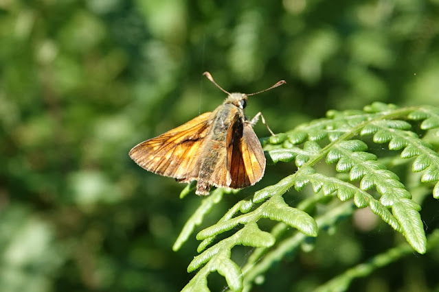 Meadow Browns and Ringlets were out in force and at one Bramble clump there