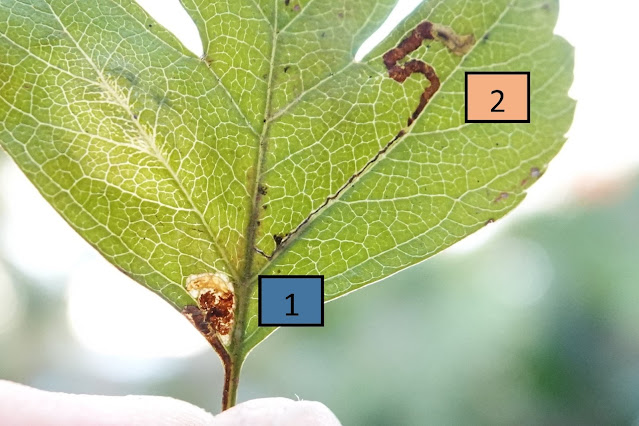 Stigmella perpygmaeella 1 & Stigmella oxyacanthella 2 on Hawthorn |