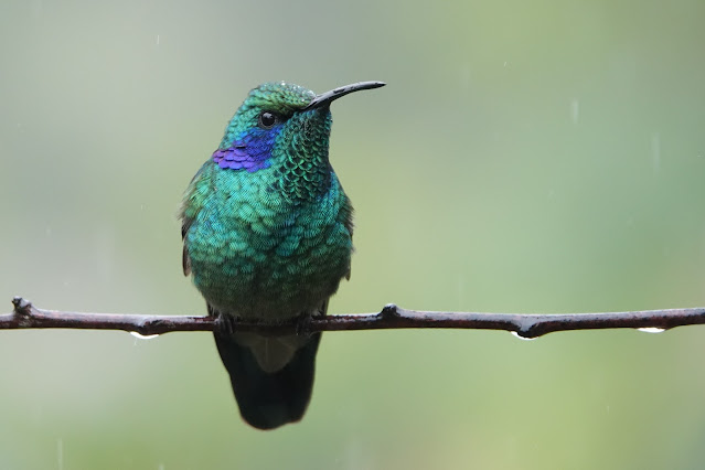 The Hummer feeders were very busy and most species were new with White-throated Mountain Gems, Heliotrope Volcano, Fiery-throated, Talamanca, Lesser Violetear and hefty Talamancas. Lunch of local trout was excellent although everyone did abandon when the Acorn Woodies came in for the first time!