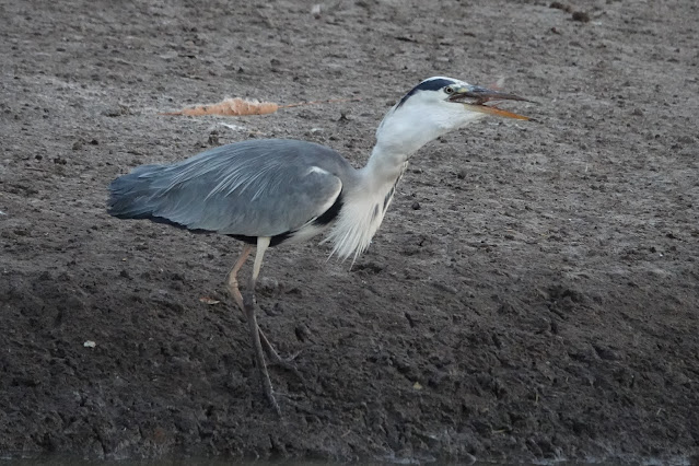 them! One Grey Heron caught a large Mullet (which just proves that all these channel and even the lake connect to the sea further down) and after spearing it several times managed to swallow it at the first attempt before a post breakfast digestive siesta.
