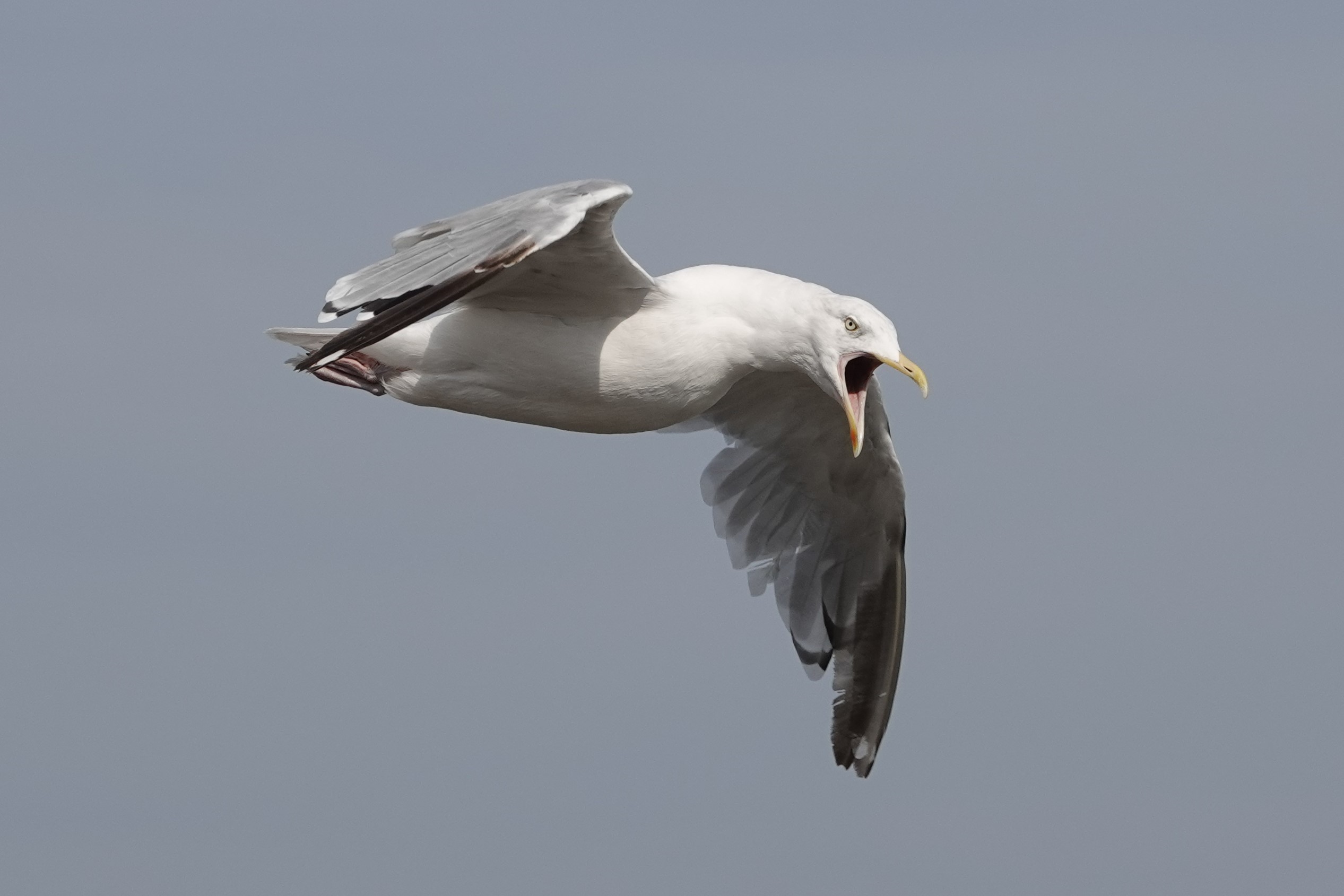 Dunnock from below. A few gulls drifted south and I picked up a young Caspian Gull amongst them much to Peter's surprise and delight.