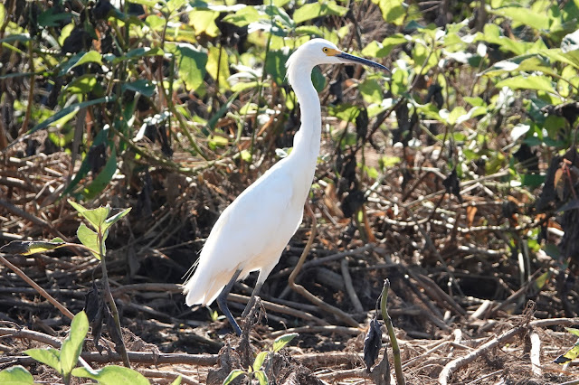 Shiny and Giant Cowbirds dispersed up river while hundreds of Egrets of all