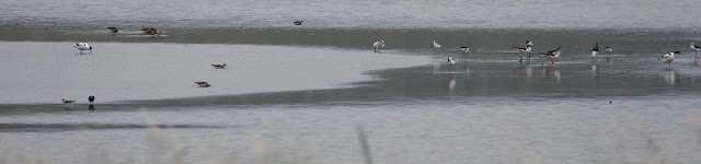 Plover, Curlew, Stilts, Avocets and two Black-tailed Godwits.